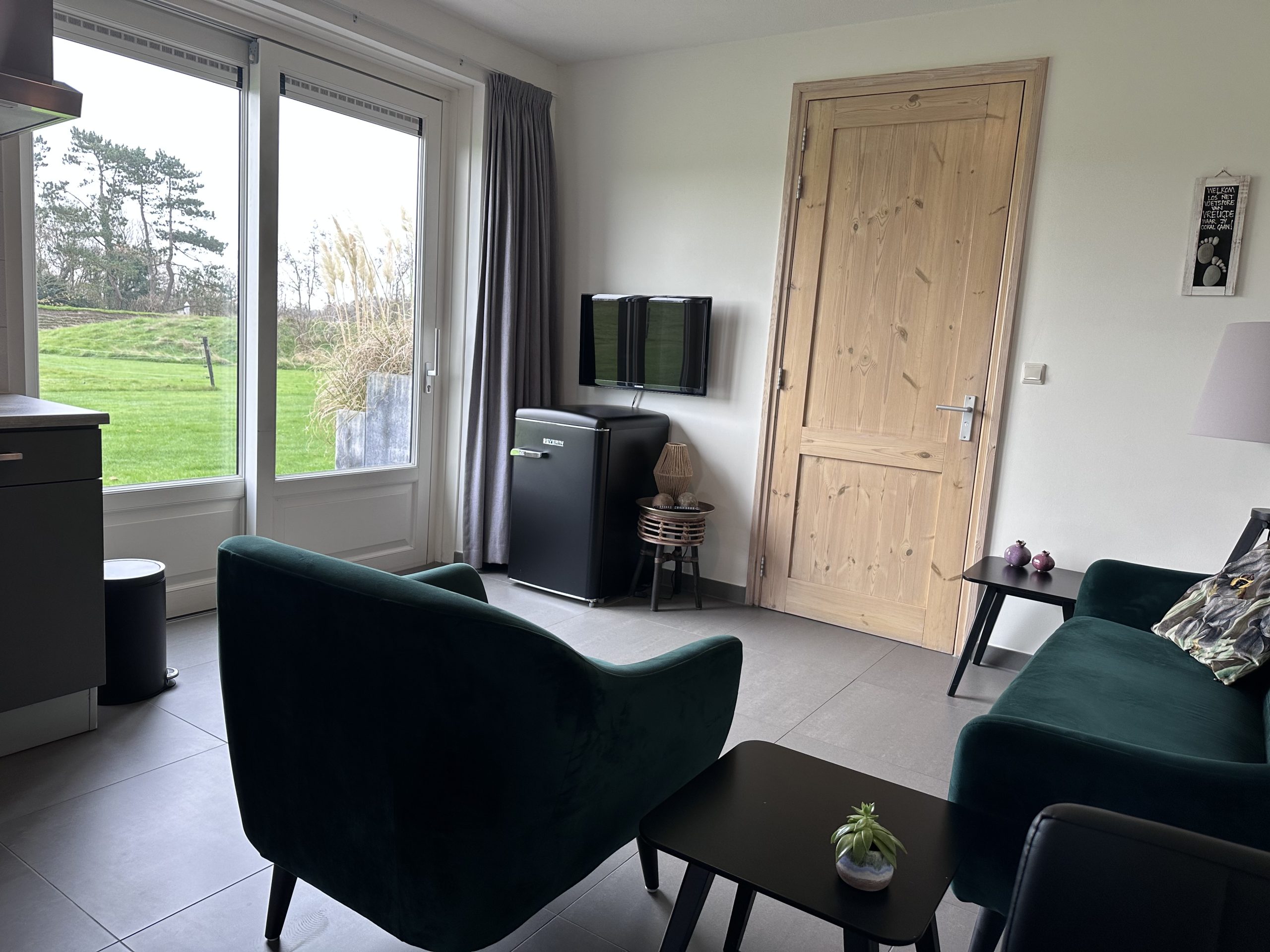 Deze kamer bevind zich op de begane grond in de stolp en heeft een eigen ingang. U heeft de beschikking over een prive badkamer met een toilet, wasbak en douche. De kamer heeft een zithoek, ontbijttafel een koelkast en een magnetron. De kamer is voorzien van een flatscreen en gratis wifi. Er is een waterkoker , Dolce Gusto-apparaat , servies en gratis koffie en thee beschikbaar. Via de schuifpui komt u bij uw eigen zitje welke op het zuiden is gericht zodat u heerlijk in de zon kunt zitten. U heeft een aparte slaapkamer.